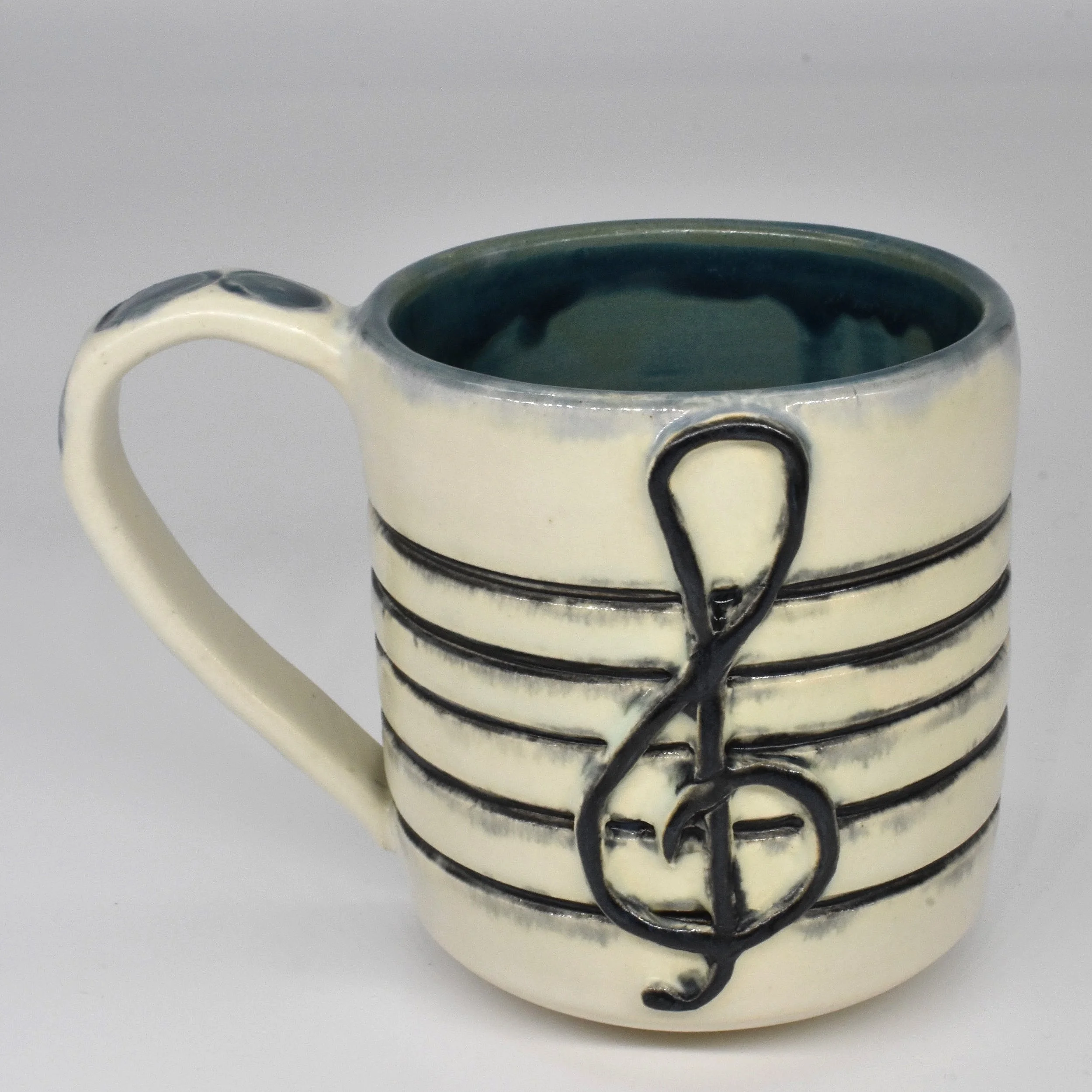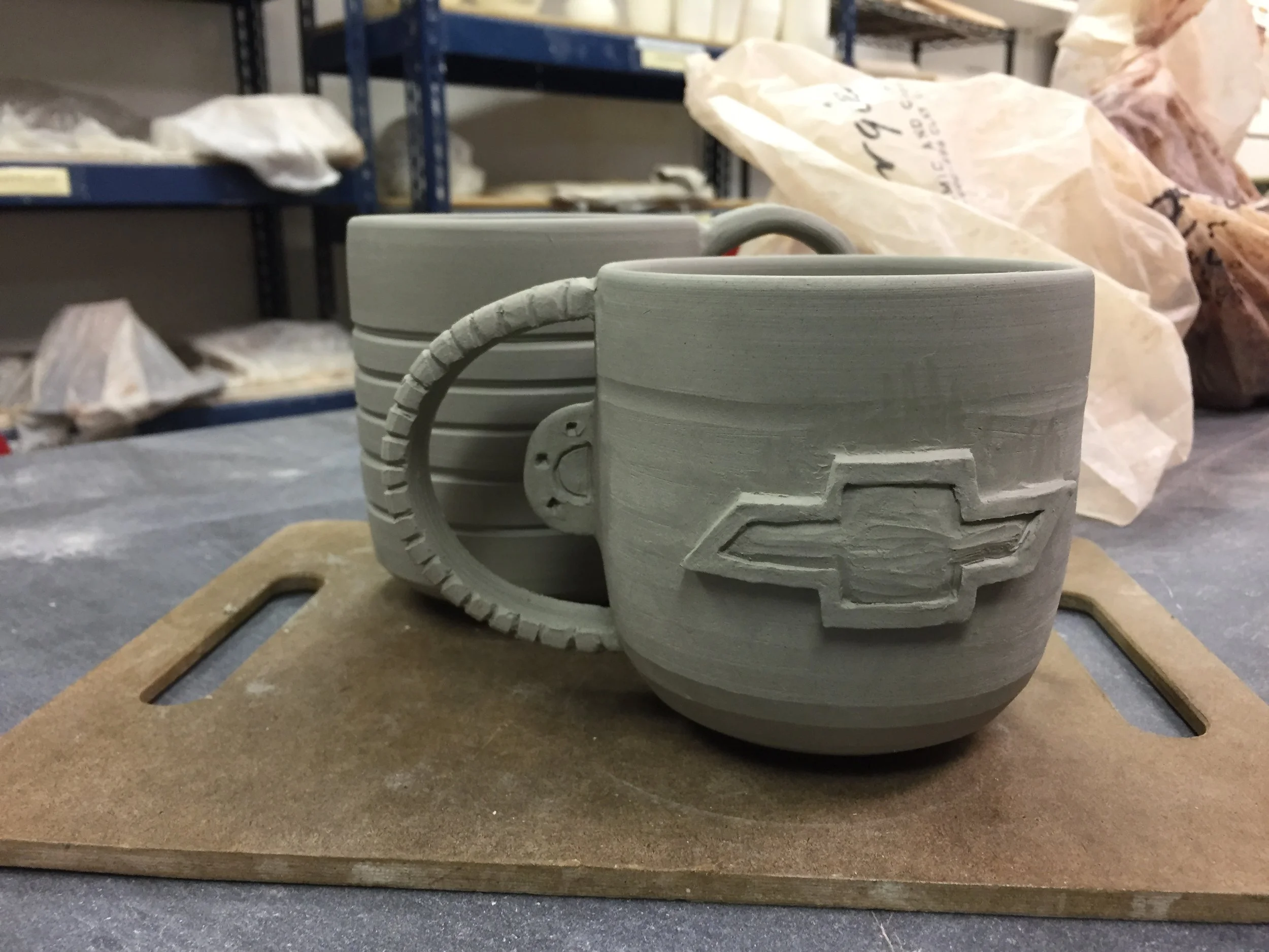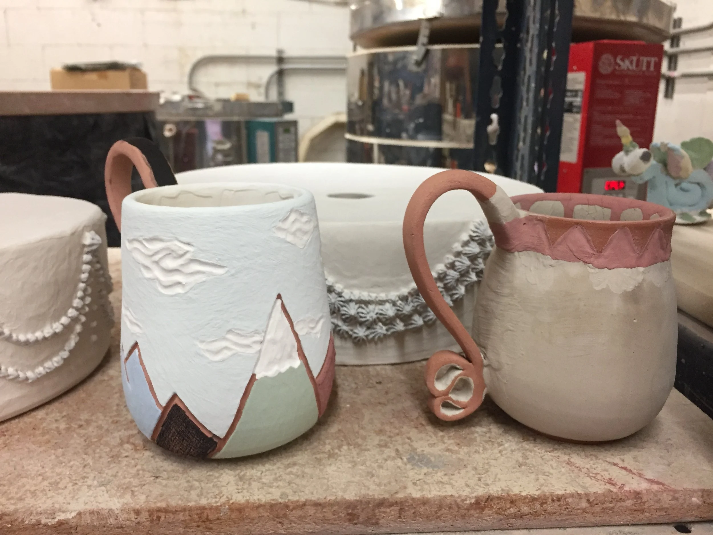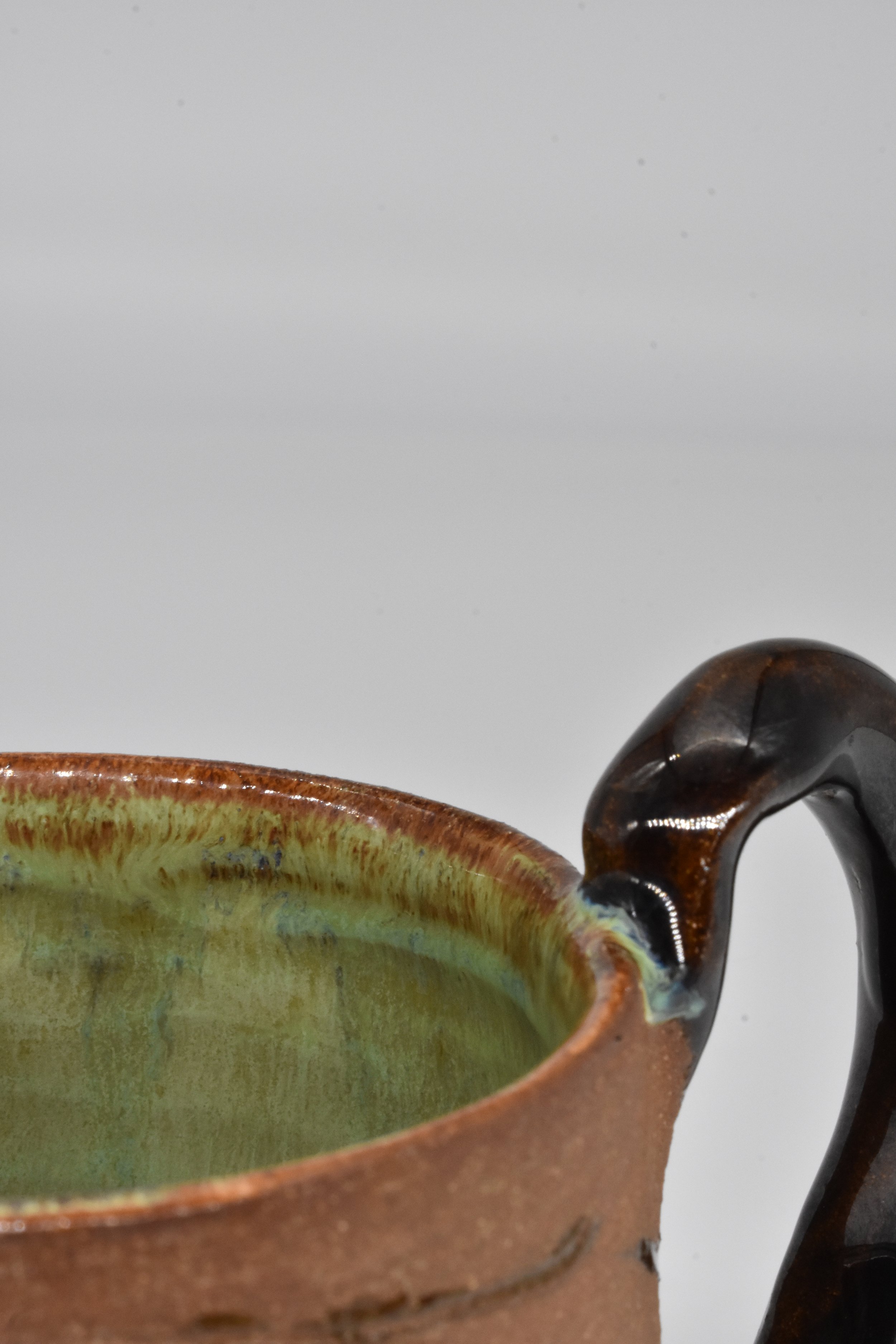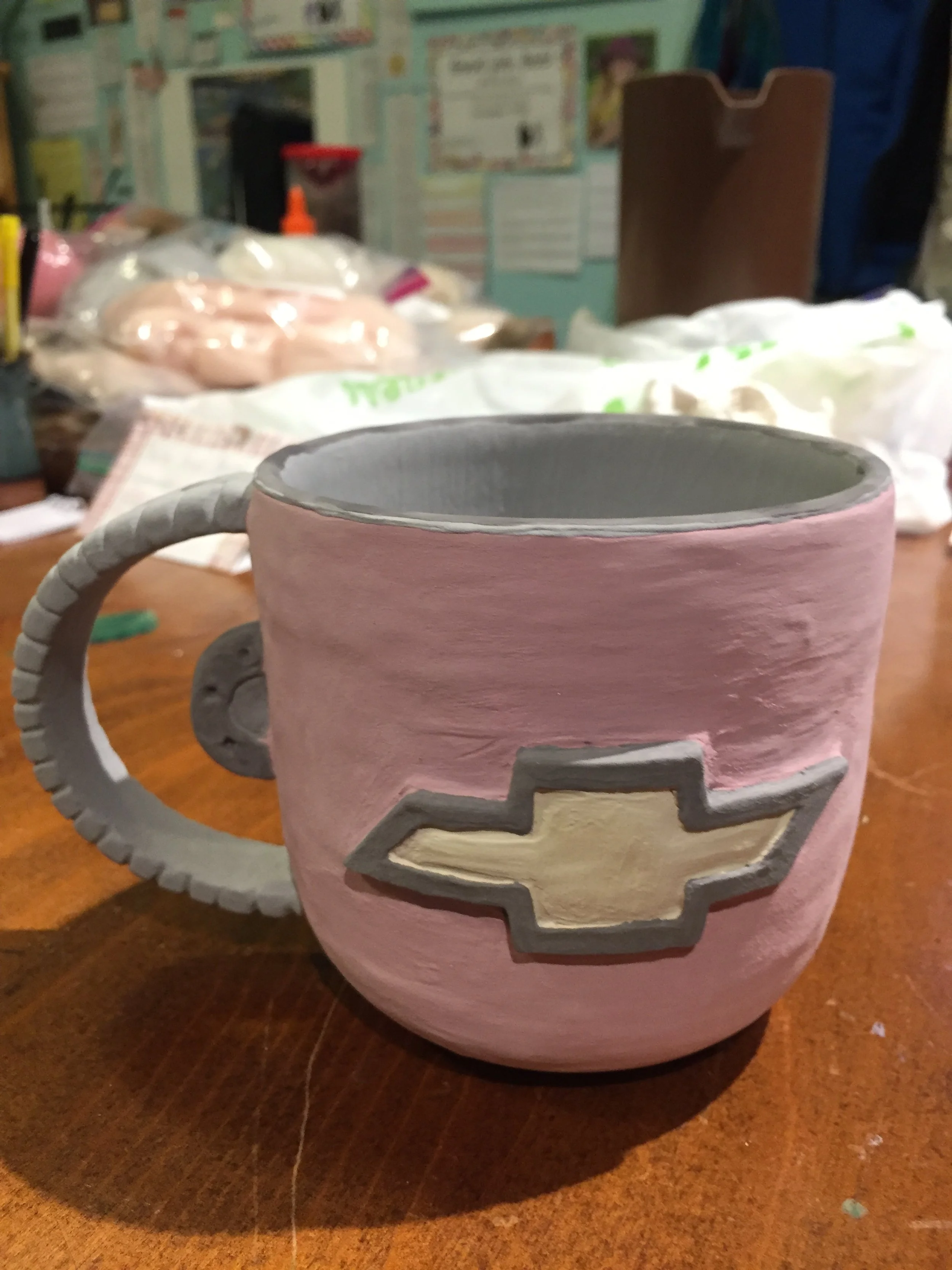 This mug took two tries. The first attempt I used brown clay. Sadly that one cracked in the final glaze firing.