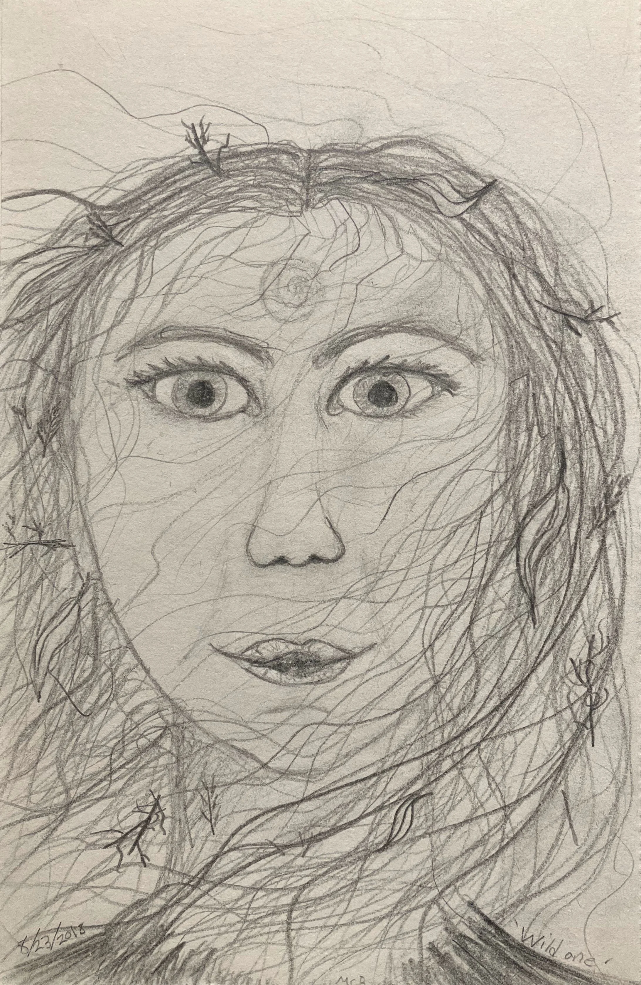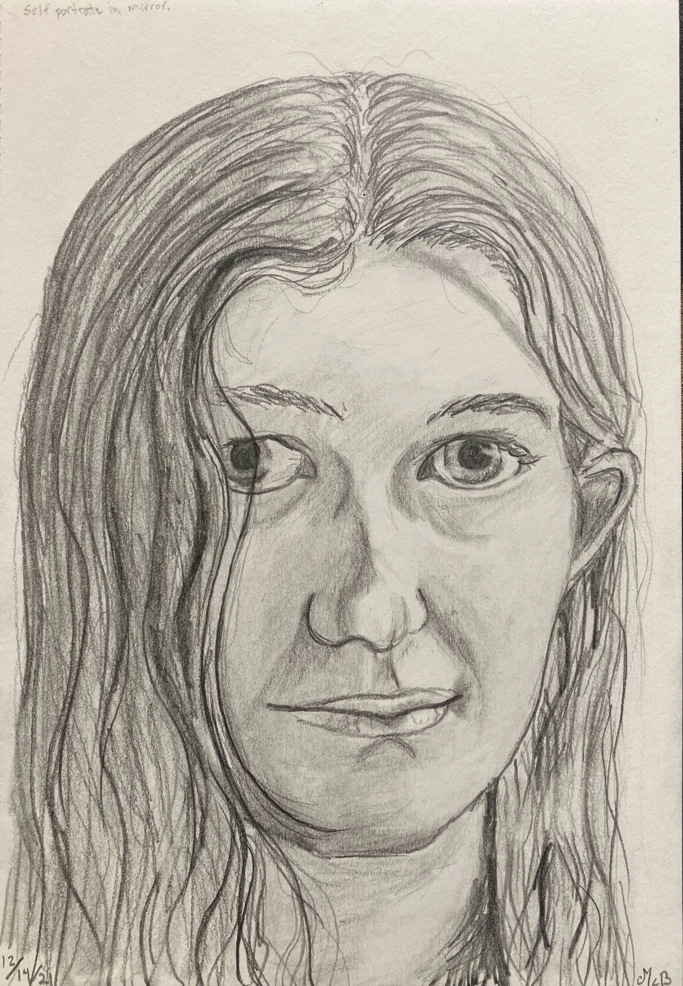 ‘Self Portrait in a Mirror’ (with artist pencils) 12/14/2021